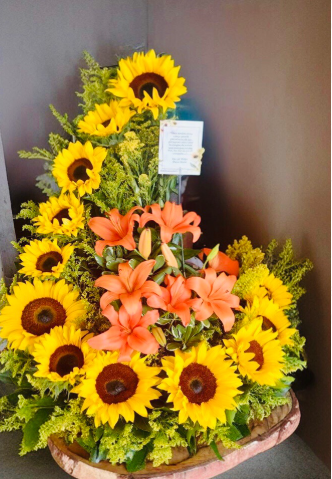 Este hermoso canasto combina la luminosidad de los girasoles 🌻 con la elegancia de los lirios anaranjados 🌸, creando una presentación vibrante y llena de vida. Los girasoles, rodeando el canasto, aportan un toque cálido y alegre, mientras que los lirios en el centro añaden un contraste delicado y sofisticado.